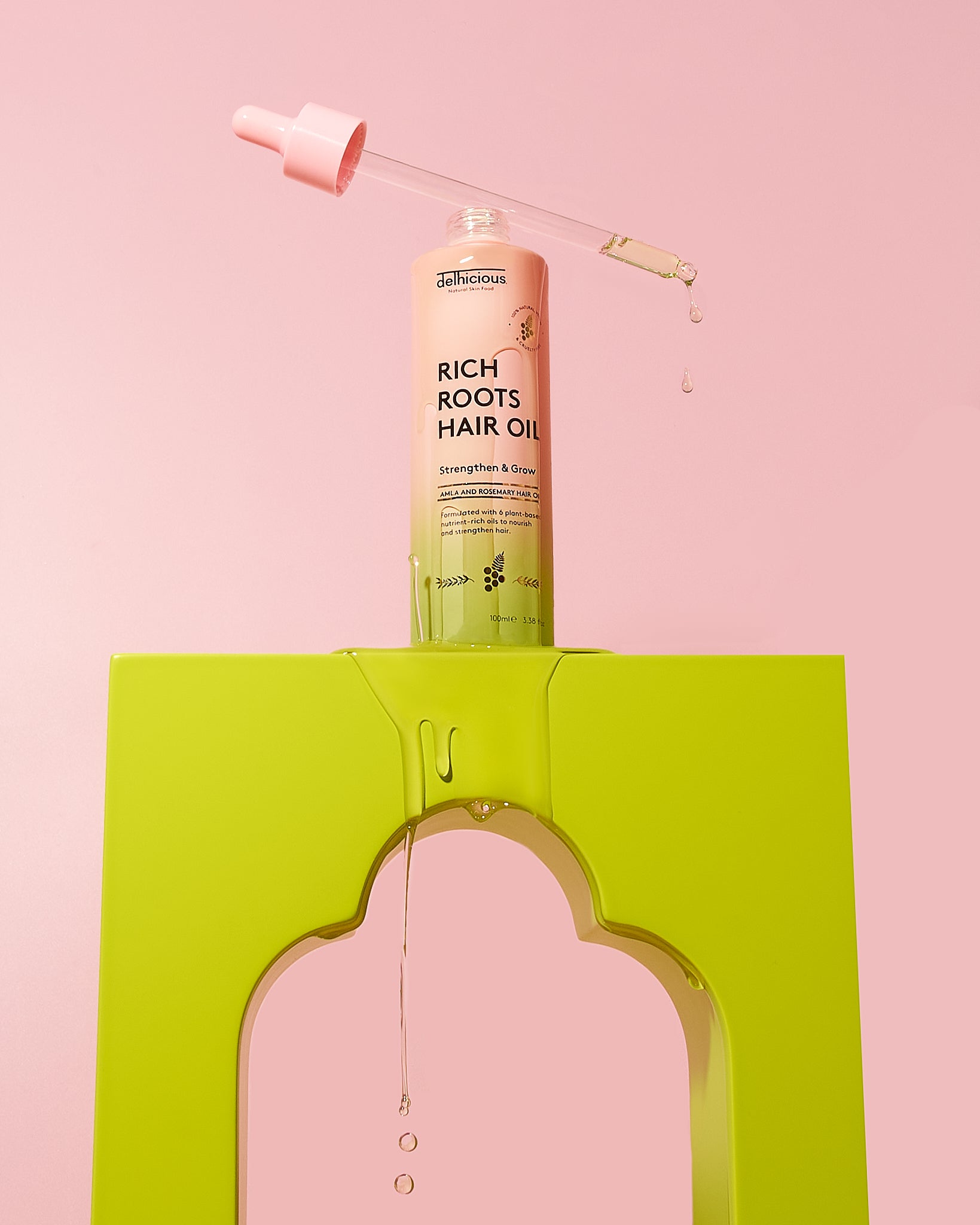 Amla (Indian Gooseberry) is rich in Vitamin C and can strengthen the scalp, reduce hair loss and stimulate hair growth. Bhringraj, also known as the ‘king of herbs’ contains anti-inflammatory properties to help reduce dandruff and relieve dry and itchy symptoms making it perfect for a psoriasis prone scalp. Antioxidant rich argan oil moisturises and adds shine whilst rosemary oil helps to stimulate follicles making hair healthier, longer and stronger.